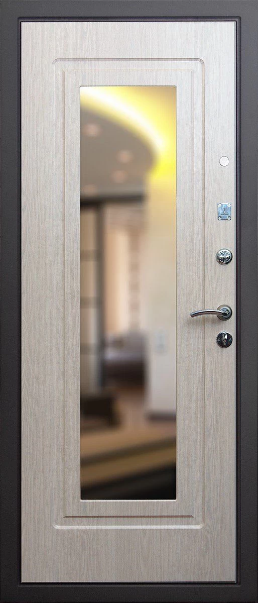 Прочная металлическая Дверь с зеркалом DZ385 по цене от 30 000 руб. под заказ в любой комплектации. Вы можете выбрать материал, замки, цилиндры и многое другое. Производим сами! Быстрая доставка и установка в Бородино.